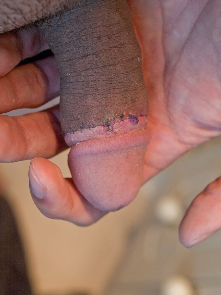 I'm also hoping that the inner skin I have left stretches a bit, girth-wise -- I don't know if it's still a little bit of swelling or what, but (especially when erect) there is a noticeable girth difference between the two parts, I'm going to put it down to "It's been three weeks since an operation" and hope that it'll sort itself out. I have a feeling I'm wanting too much too soon!